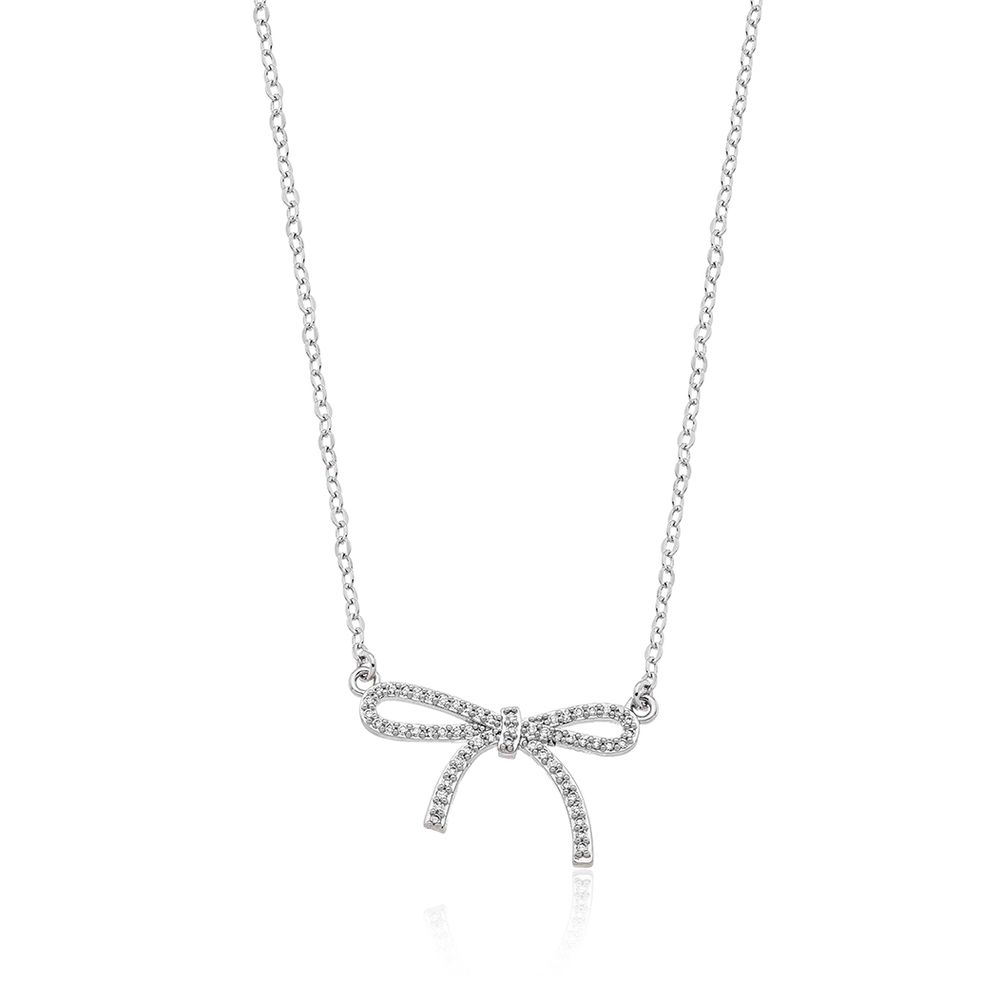 Colar Laço Cravejado Banho Ródio Zircônia Transparente U |