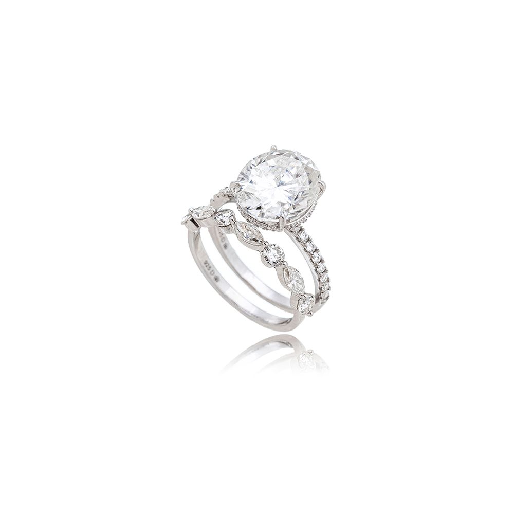 Anel Duo Aparador Oval 10.12MM Prata 925 Moissanite Moissanite ARO 16 |