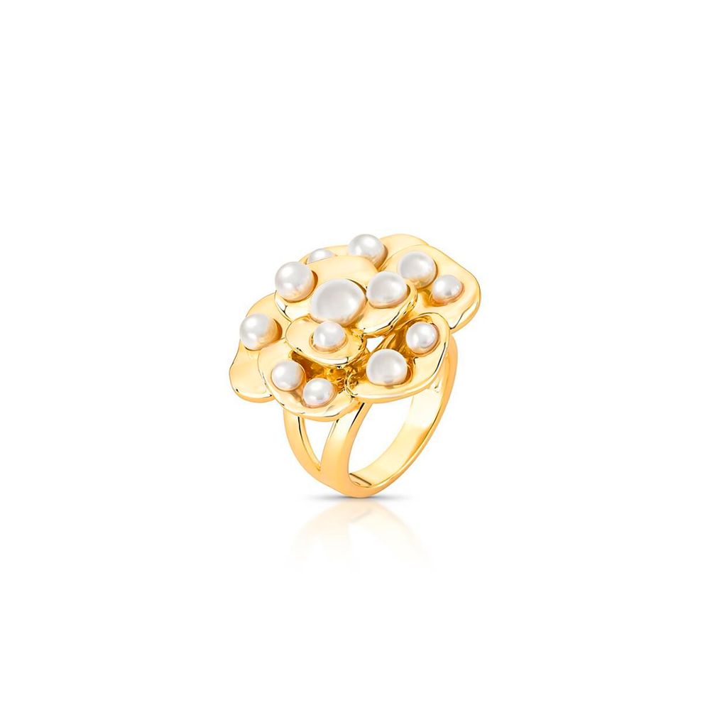 Anel Flor Detalhe Pérolas Banho Ouro 18K Pérola Shell Perola Shell ARO 18 |