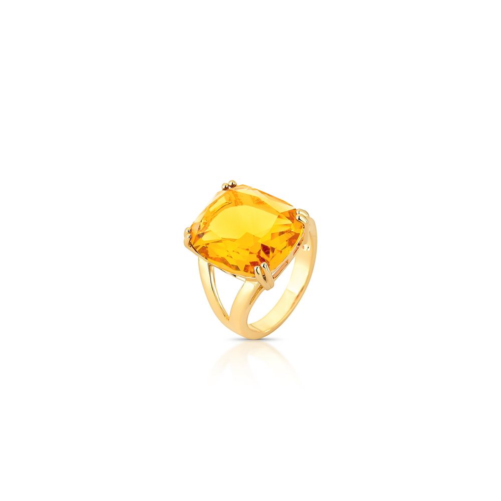 Anel geométrico com design vazado e cristal amarelo central, unindo leveza, modernidade e brilho. Banhado a Ouro 18K, é uma peça estilosa e marcante, perfeita para destacar as mãos com um toque contemporâneo e sofisticado.