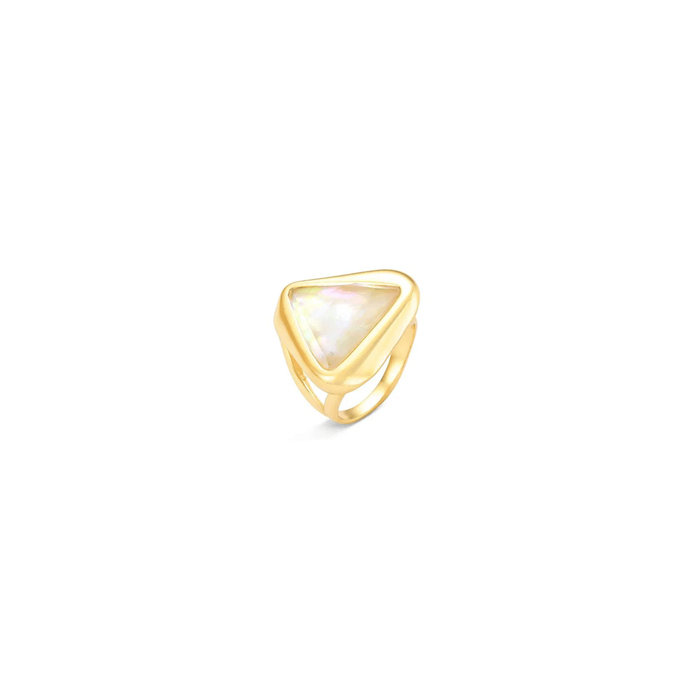 Anel Triângulo Facetado Pedra Banho Ouro 18K Nautilus Madreperola ARO 16 |