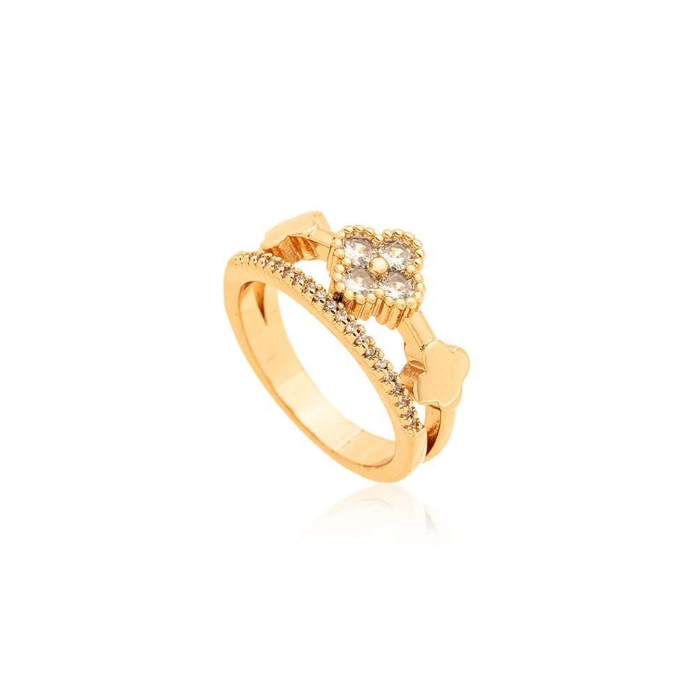 Anel Vazado Trevo Cravejado Banho Ouro 18k Zircônia Transparente ARO 20 |