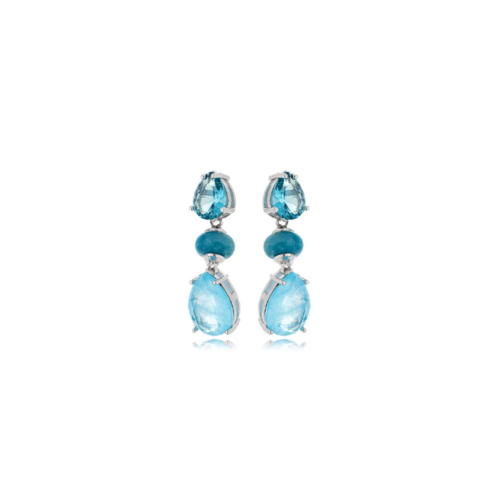 Brinco Aqua Base Gota Banho Ródio Cristal Fusion Jade Azul U |