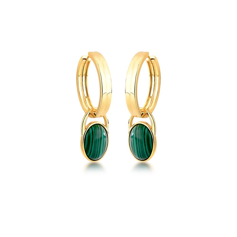 Brinco Argola 2 em 1 Oval Pedra Banho Ouro 18k Malaquita Malaquita Verde U |