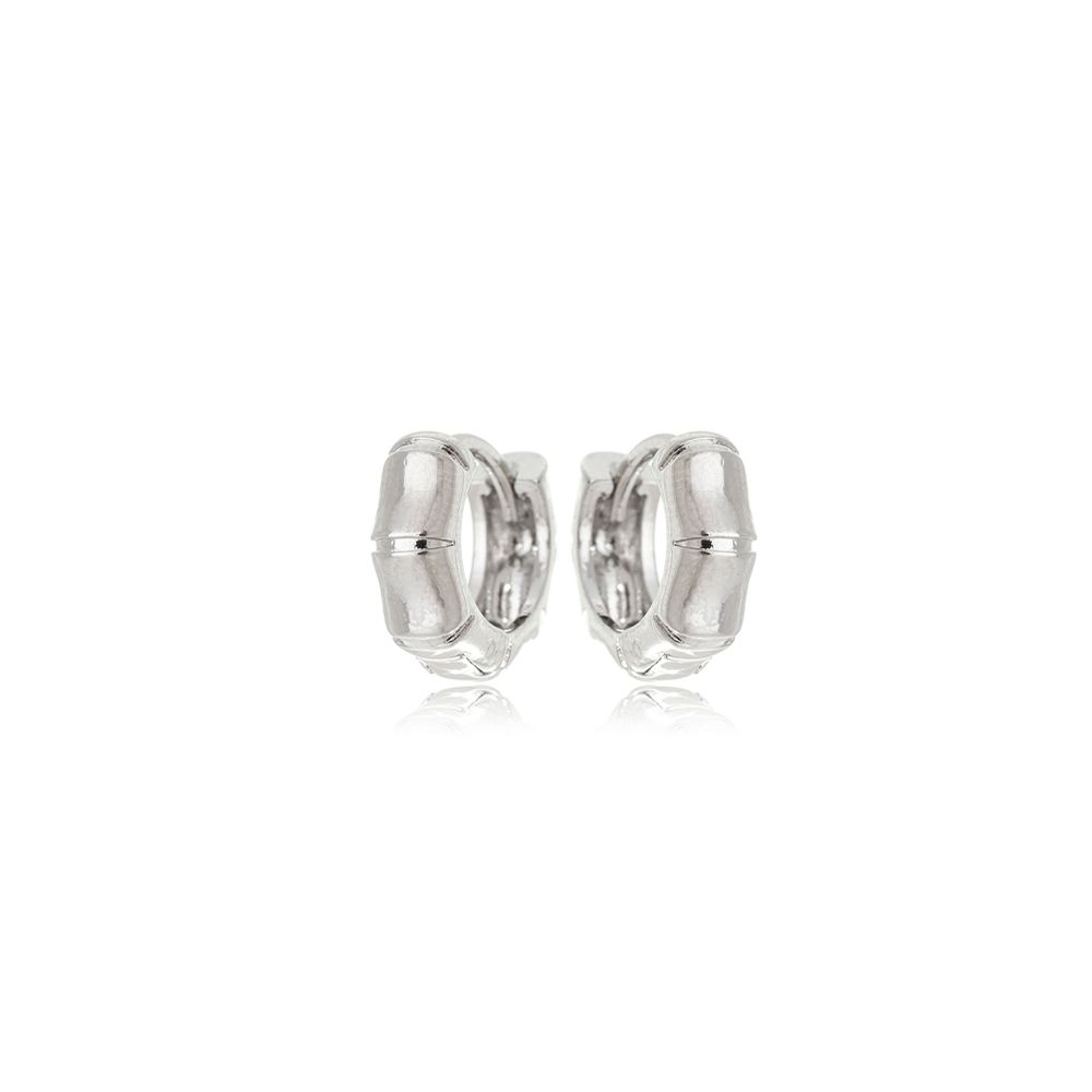 Brinco argola clic, liso e com detalhe sextavado.