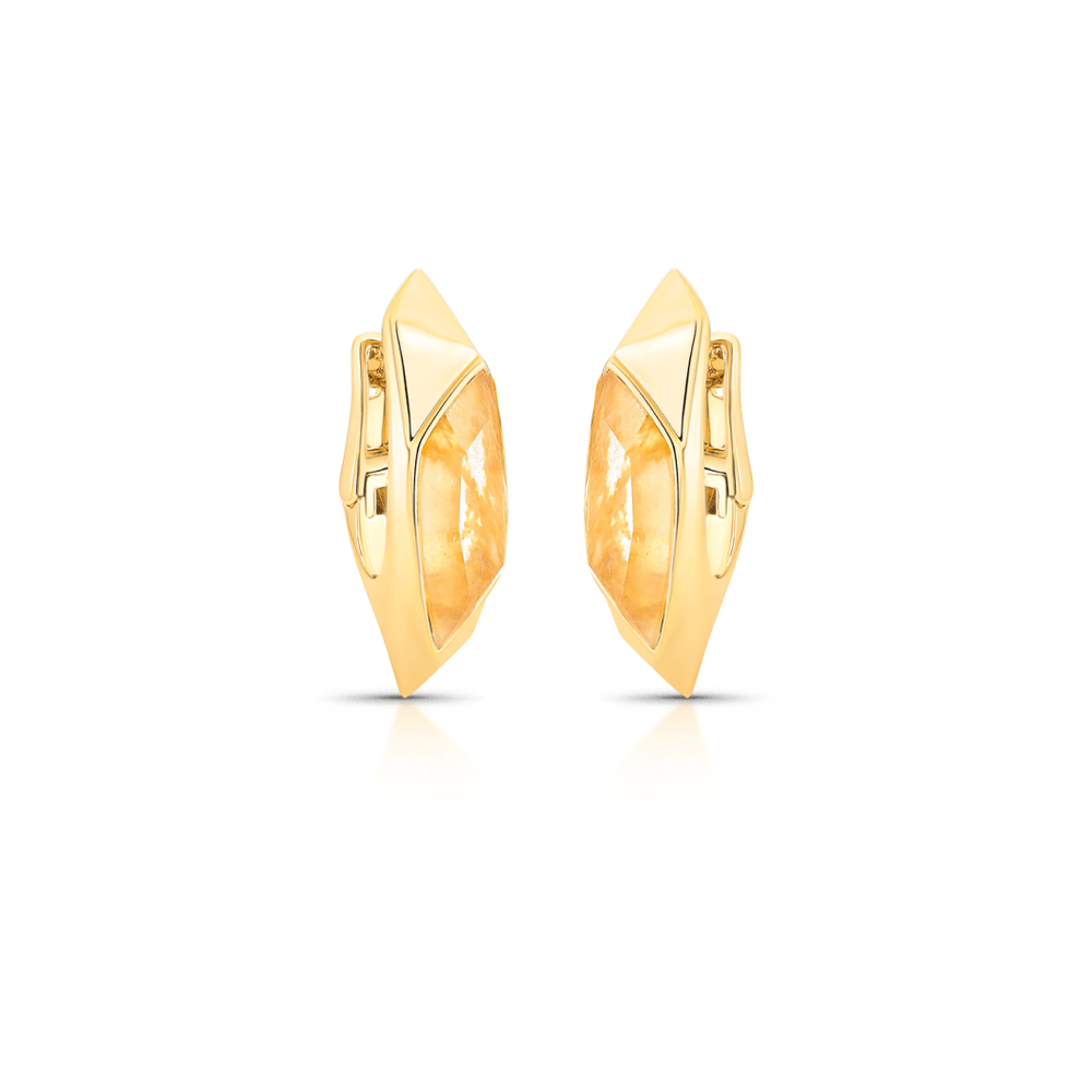 Brinco Argola Geométrico Facetado Pedra Banho Ouro 18K Rutilo Rutilo U |