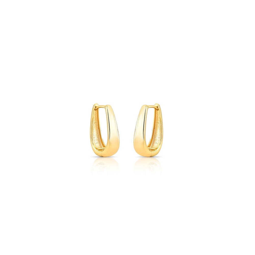Brinco de argola lisa em formato oval abaulado, com design moderno e elegante. Banhado a Ouro 18K, é uma peça versátil e sofisticada, perfeita para complementar qualquer produção com brilho sutil e acabamento impecável.