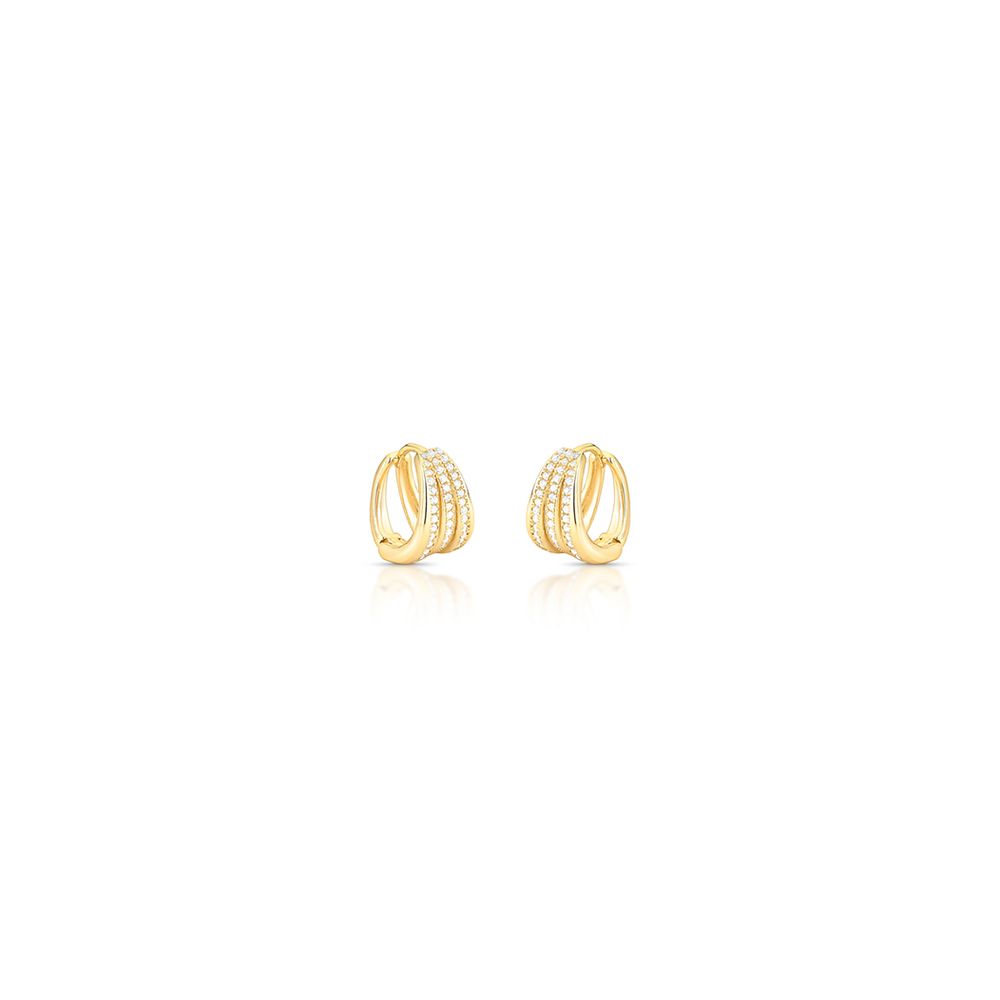 Brinco Argolinha Click Vazada Cravejada Banho Ouro 18k Zircônia Transparente U |