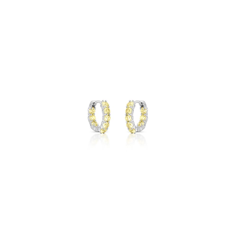Brinco Argolinha Cravejada Cristal Banho Ródio Yellow Fancy U |