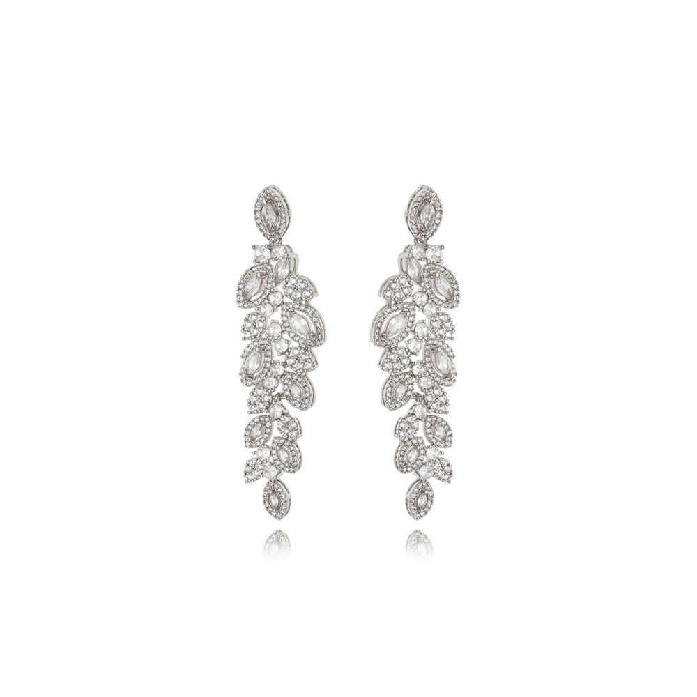 Brinco Cacho Navetes Cravejado Banho Ródio Cristal Zircônia Transparente U |
