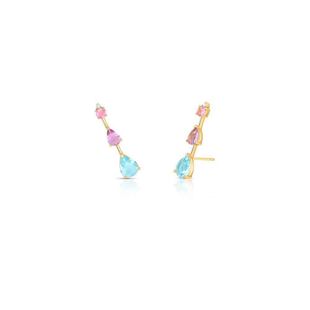 Brinco Earcuff Gotas Banho Ouro 18K Cristal Colorido U |