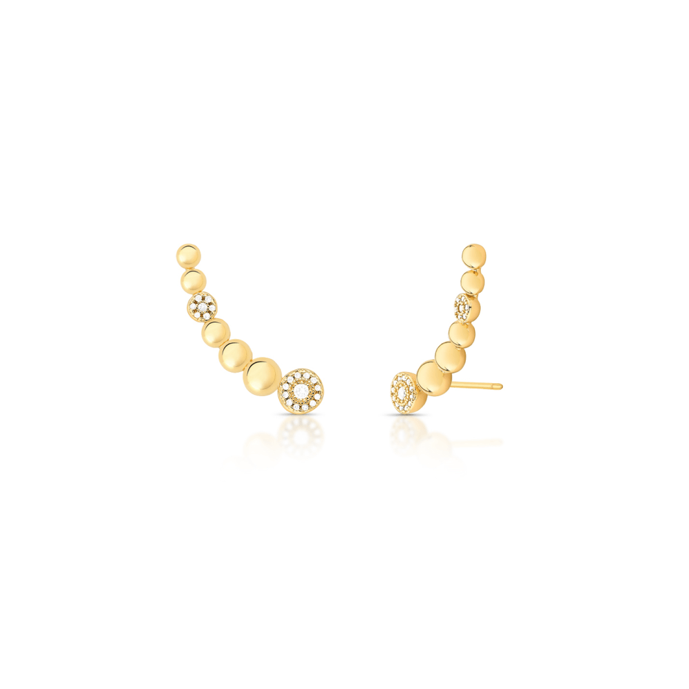 Brinco Earcuff Liso Bolinhas Cravejado Banho Ouro 18K Zircônia Transparente U |