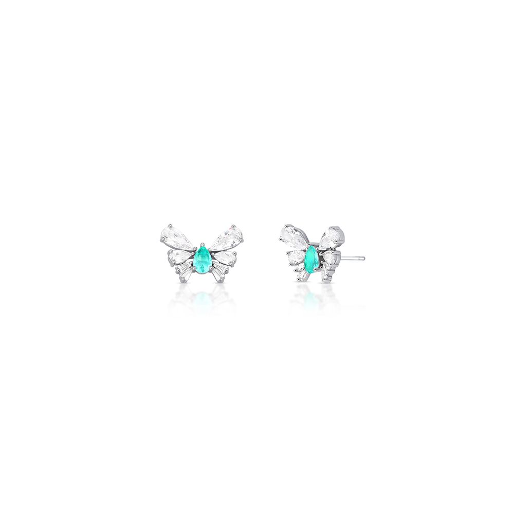 Brinco Fixo Borboleta Banho Ródio Cristais Turmalina U |