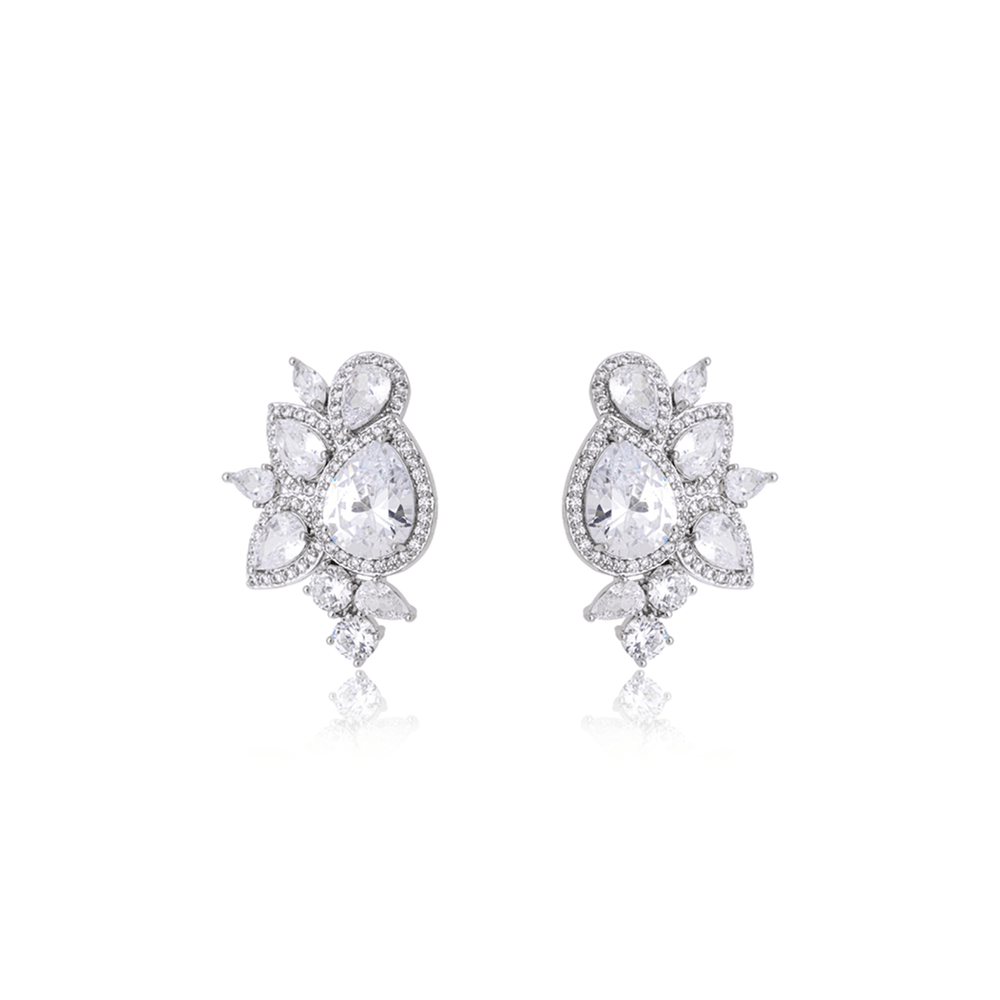 Brinco fixo banhado em ródio, formado por quatro gotas de cristal transparente, criando um estilo sofisticado e marcante. A delicada moldura cravejada em zircônias transparentes adiciona ainda mais brilho e elegância à peça, tornando-a ideal para realçar qualquer look com um toque de cor e sofisticação.
