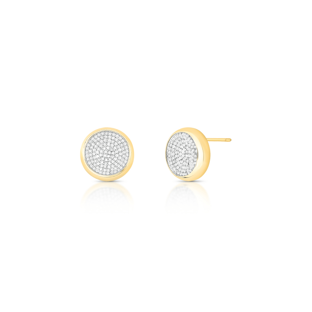 Brinco Fixo Redondo Cravejado Banho Ouro 18K Zircônia Transparente U |