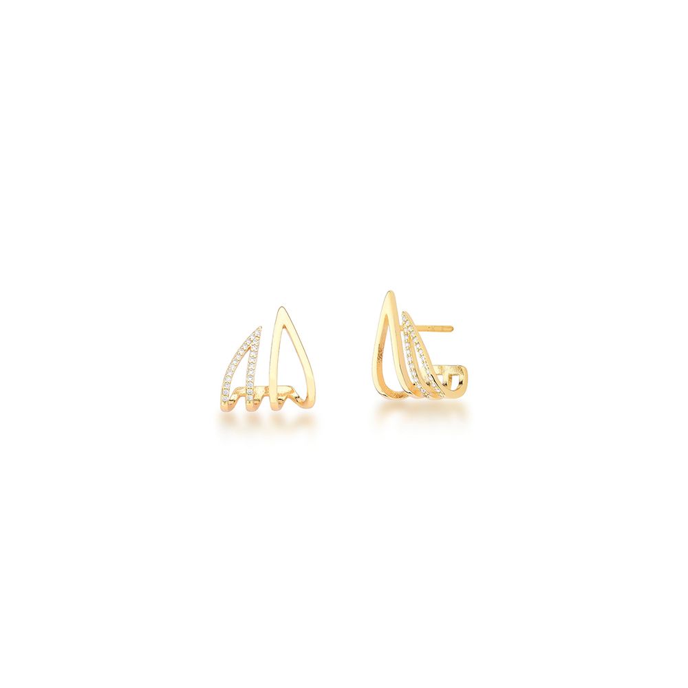 Brinco com design de gota dupla vazada e acabamento cravejado, que cria um visual elegante e contemporâneo. Banhado a Ouro 18K, é uma semijoia sofisticada, com brilho na medida certa, ideal para compor produções refinadas tanto de dia quanto à noite.