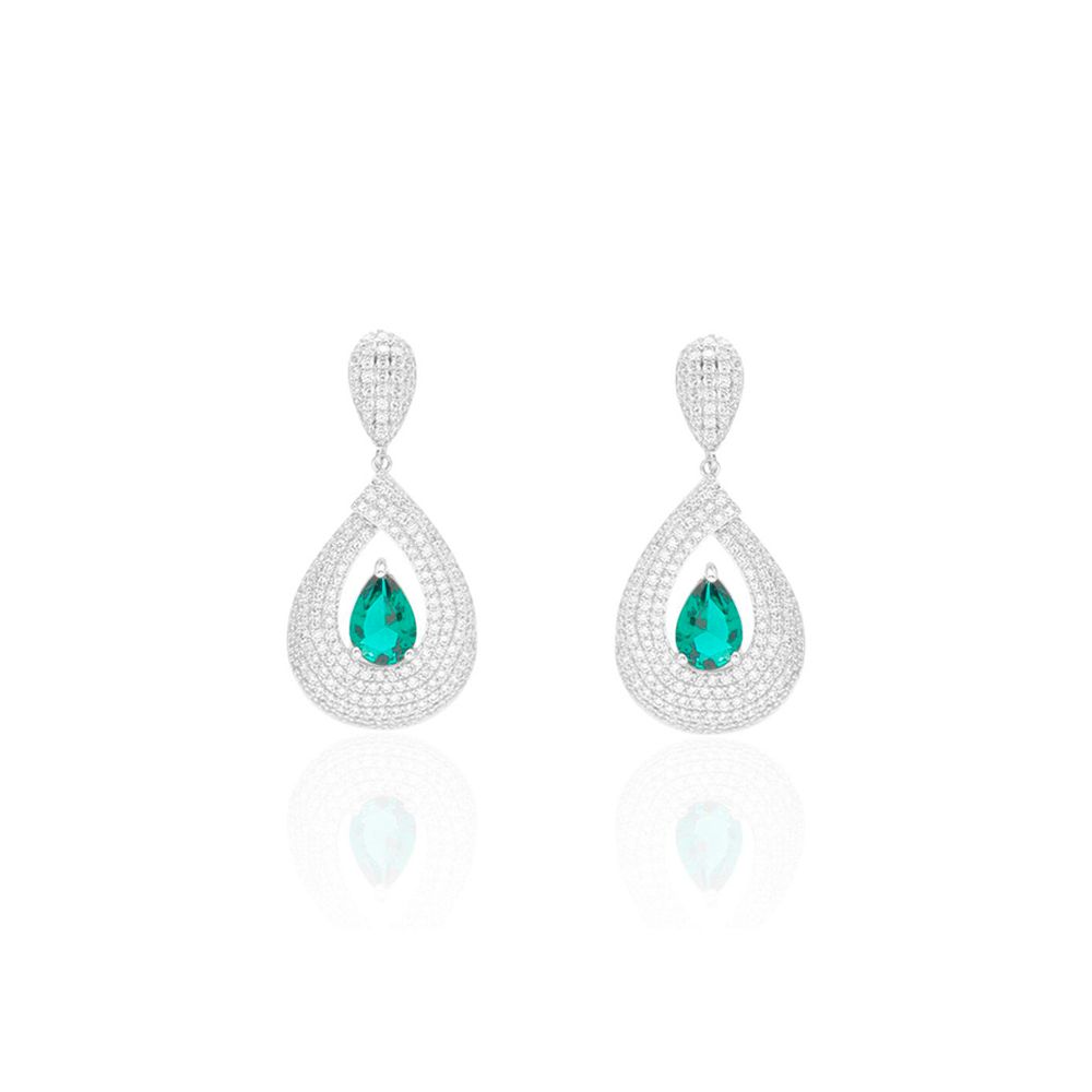 Elegante e cheio de brilho, este brinco apresenta uma gota facetada em cristal, realçada por uma delicada volta cravejada. O banho platina adiciona um toque moderno e sofisticado, tornando a peça perfeita para eventos, festas ou para destacar produções clássicas com um toque de luxo.
