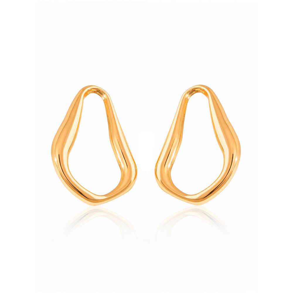 Brinco Grande Orgânico Liso Banho Ouro 18K Dourado U |