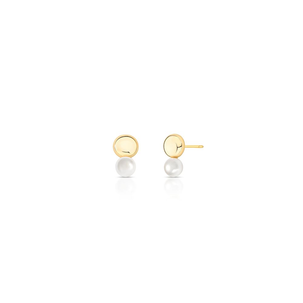 Brinco Liso Base Redondo Pérola Banho Ouro 18K Pérola Shell Perola U |