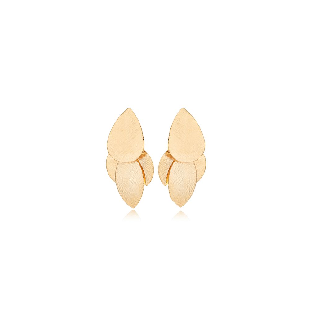 Brinco Liso Folhas Texturizadas Banho Ouro 18K Dourado U |