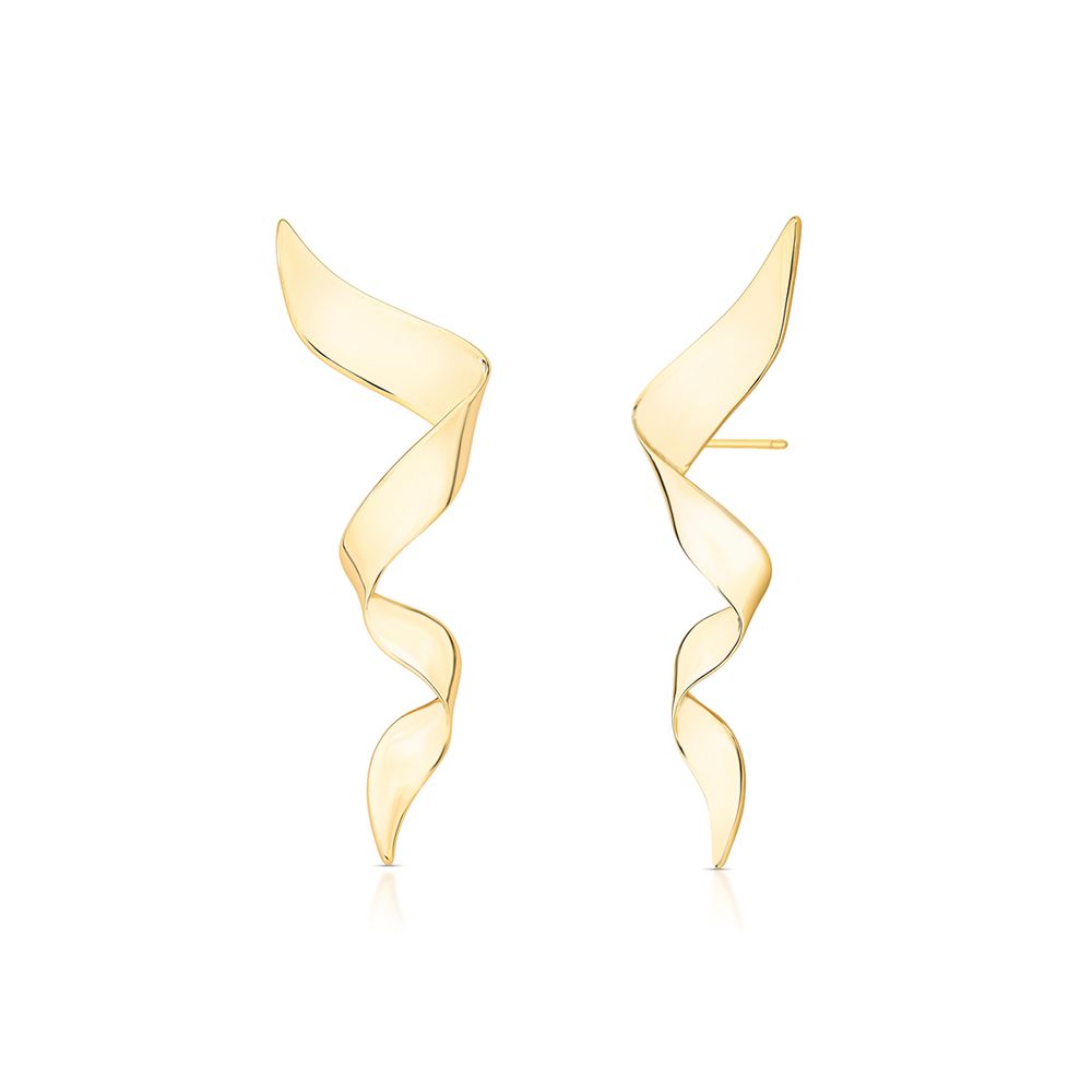 Brinco Liso Longo Espiral Curvado Banho Ouro 18K Dourado U |