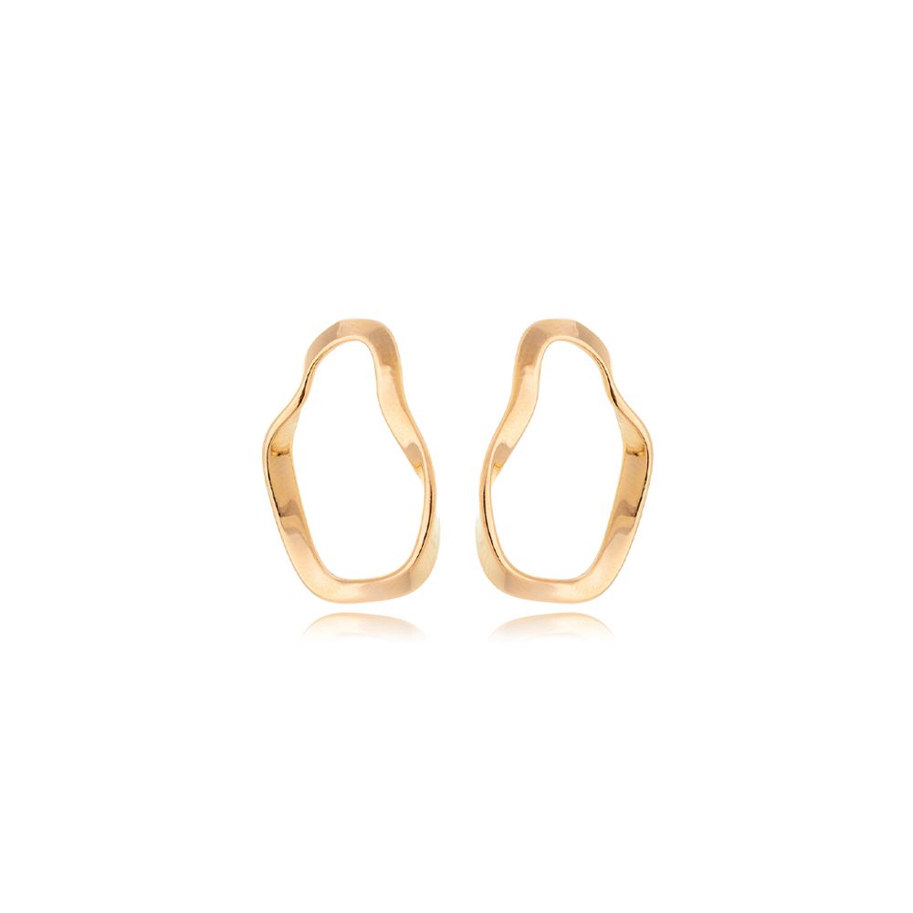 Brinco Liso Oval Ondulado Vazado Banho Ouro 18k Rosa Valverde Dourado U |