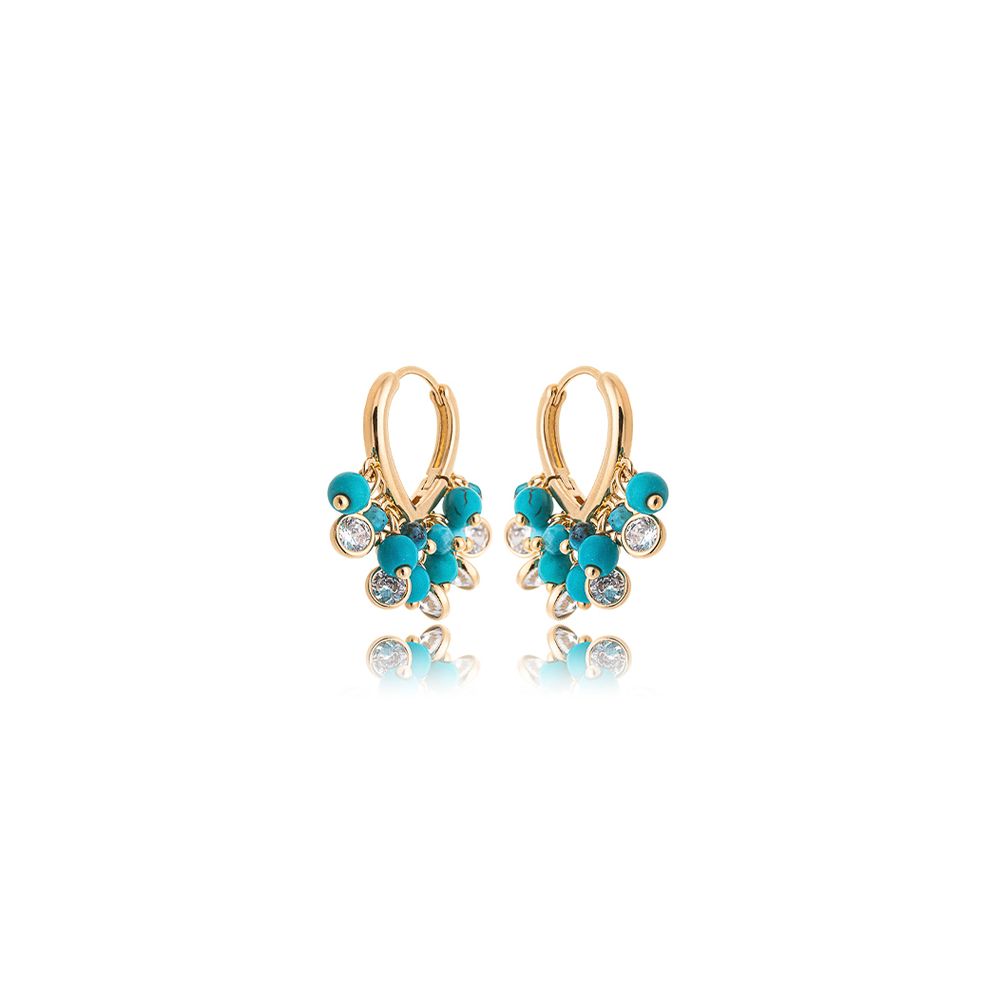 Brinco Masha Argola Click Cachos Banho Ouro 18k Howlita Cristal Turquesa U |