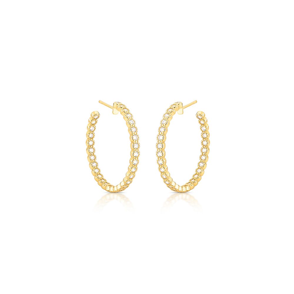 Brinco Meia Argola Bolinhas Zircônia Banho Ouro 18k Transparente U |