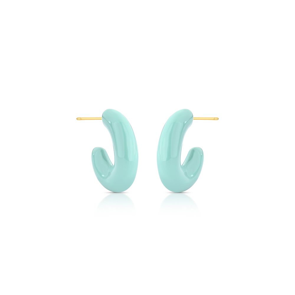 Brinco Meia Argola Liso Esmaltado Banho Ouro 18K Verde U |