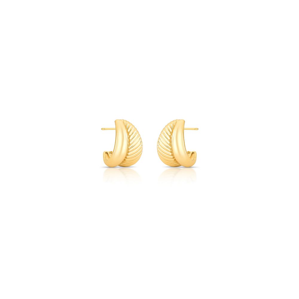Brinco de meia argola com design liso em voltas, criando um visual moderno, elegante e cheio de presença. Banhado a Ouro 18K, é uma peça sofisticada e versátil, perfeita para complementar o look com estilo atemporal.