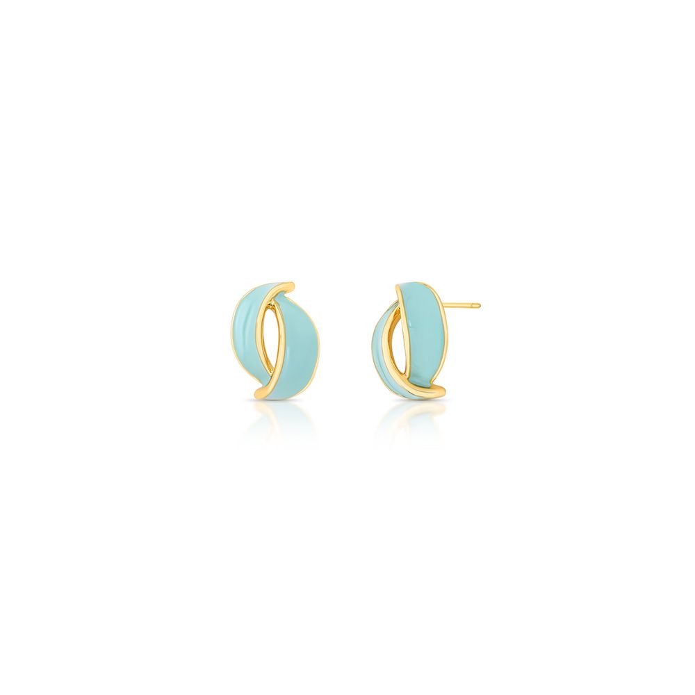 Brinco Meia Lua Liso Esmaltado Banho Ouro 18K Verde U |