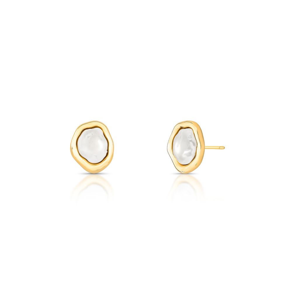 Brinco Orgânico Meio Perolado Pérola Shell Banho Ouro 18K Perola U |