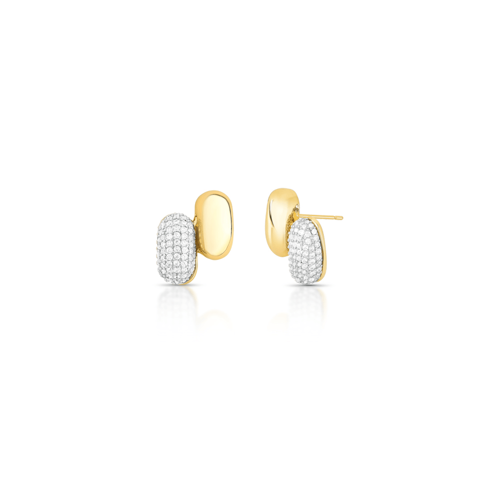 Brinco Ovais Cravejado Banho Ouro 18K Zircônia Transparente U |