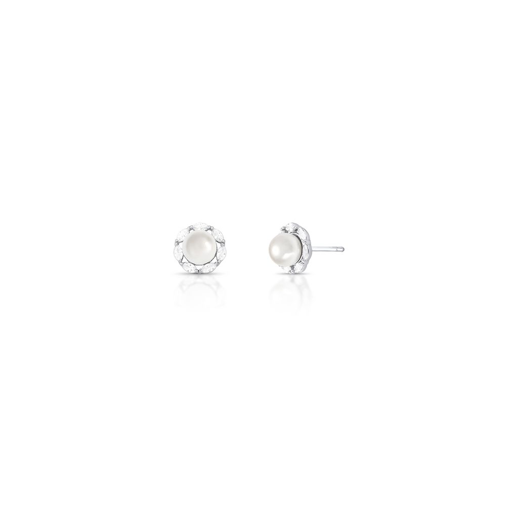 Brinco Pérola Volta Cravejada Banho Ródio Pérola Shell Transparente U |