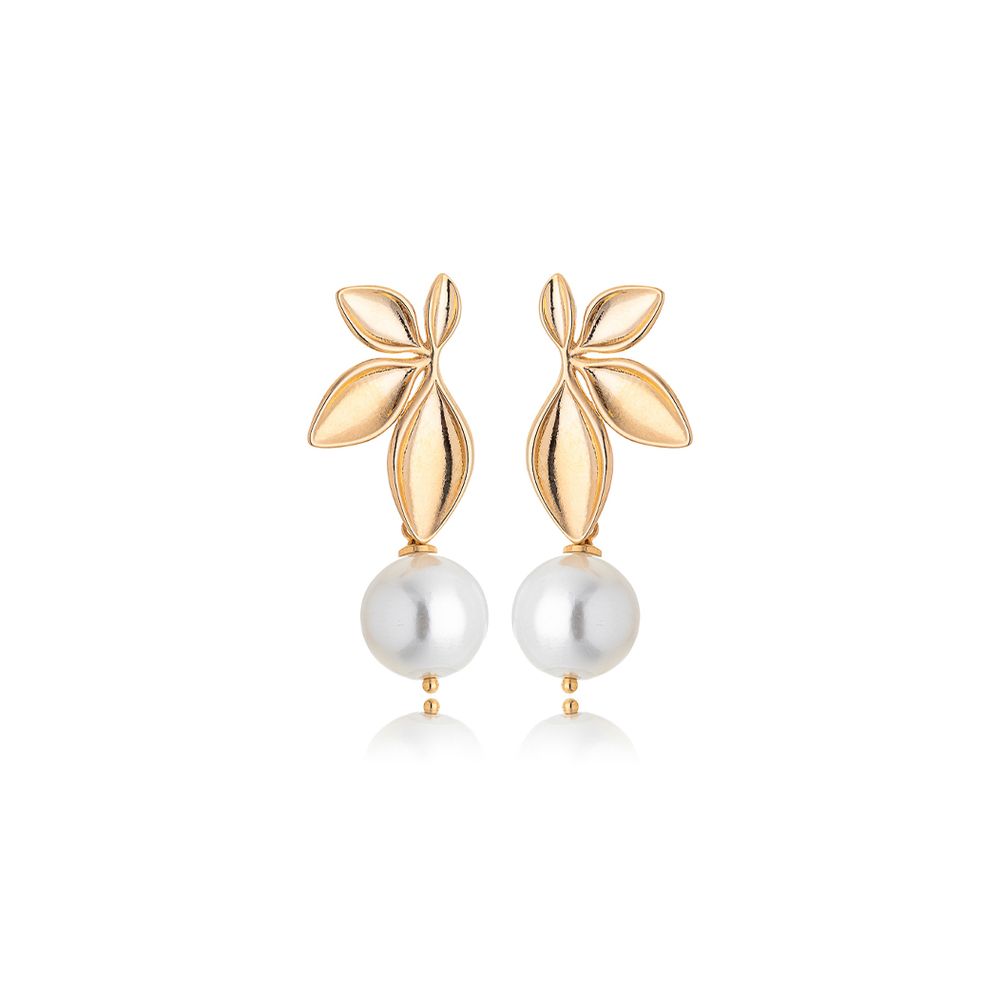 Brinco Sereia Base Folha Pérola Banho Ouro 18k Pérola Shell Perola Shell U |