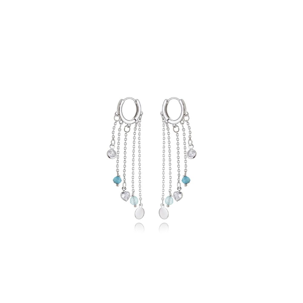 Brinco Teen Aqua Base Argola Pingentes Banho Ródio Cristal Jade Azul U |