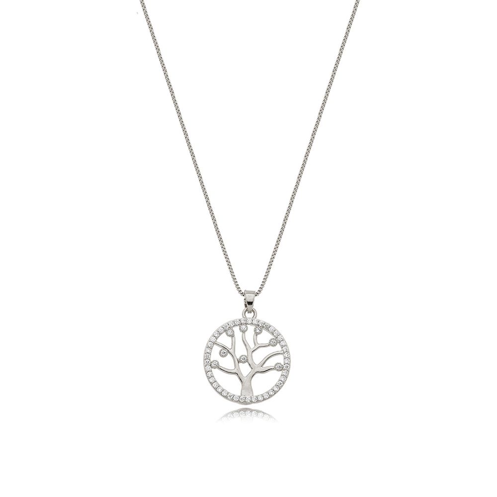Colar Árvore da Vida Volta Cravejada Banho Ródio Zircônia Transparente U |