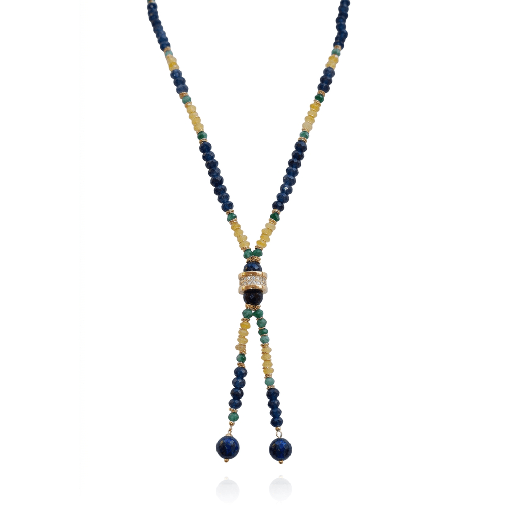 Colar Brasil Gravata Banho Ouro 18K Jade Zircônia Colorido U |