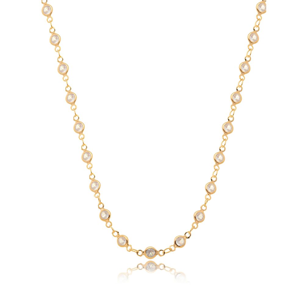 Colar Choker Delicado Pontos de Luz Banho Ouro 18K Cristal Transparente U |
