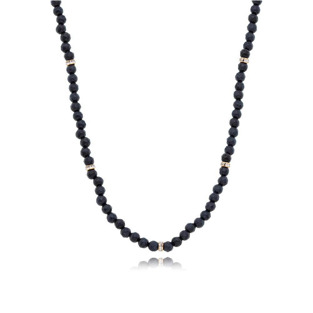 Colar Choker Detalhes Cravejados Banho Ouro 18K Jade Chumbo U |