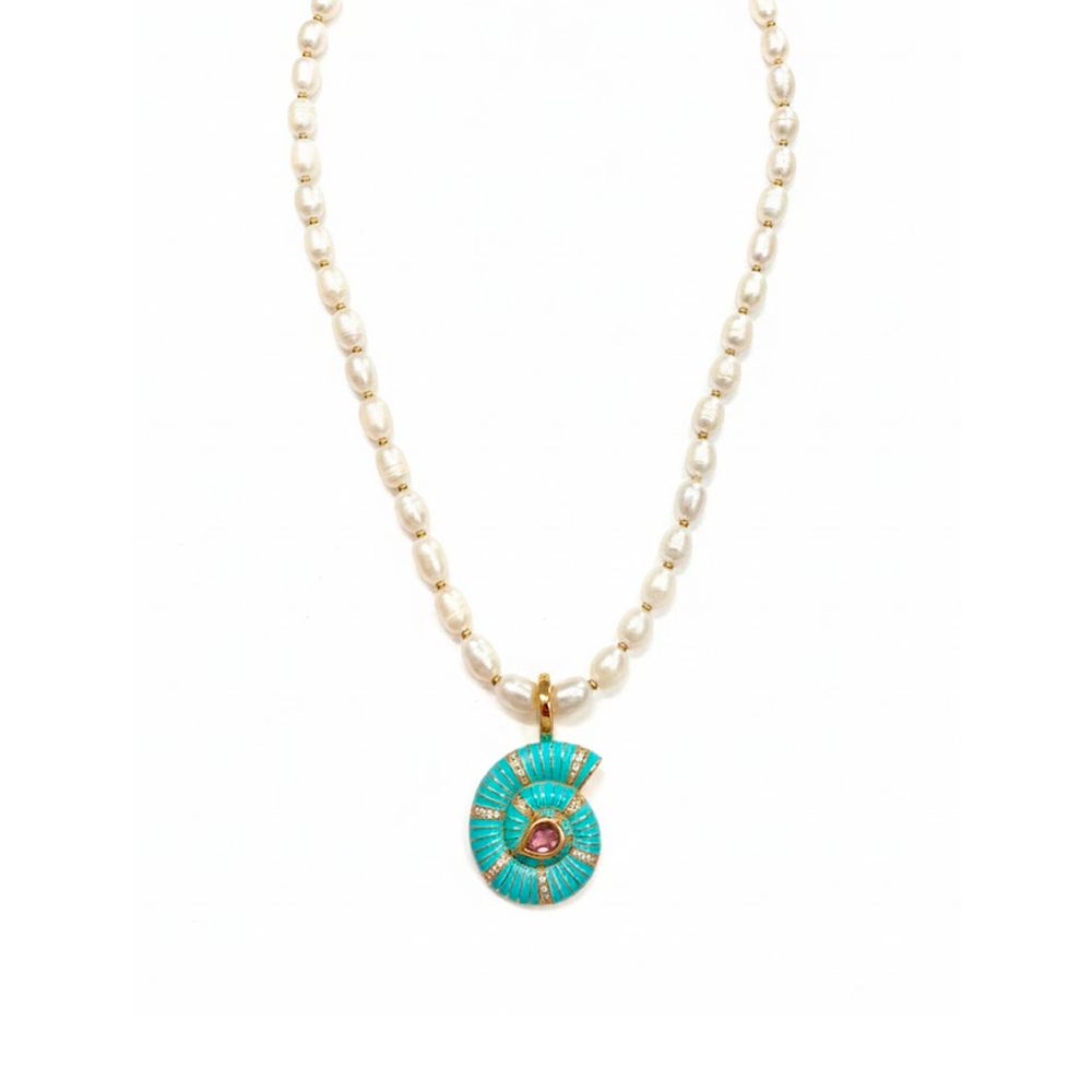Um colar que traduz delicadeza e brilho em cada detalhe. O pingente de concha esmaltada ganha destaque ao lado da pedra central e da madrepérola, criando um equilíbrio perfeito entre textura, luminosidade e elegância. O banho em Ouro 18K realça o design orgânico, enquanto as zircônias cravejadas iluminam a peça com um toque sofisticado. Uma semijoia completa, moderna e feminina ¿ ideal para compor mix refinados ou ser o ponto de destaque do look.