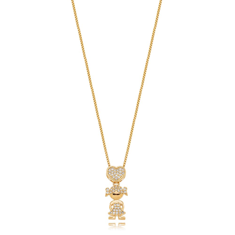 Colar Coração Menina Cravejado Banho Ouro 18K Zircônia Transparente U |