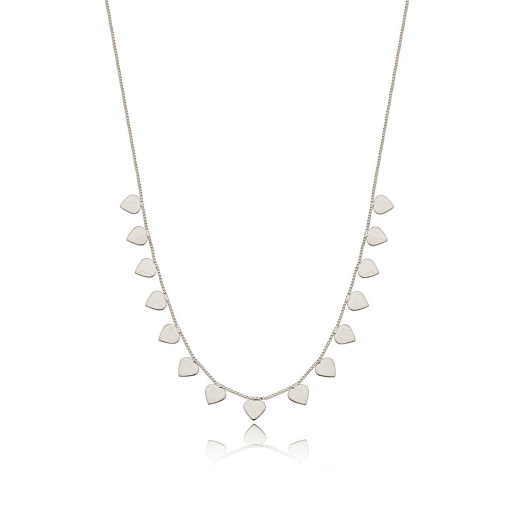 Delicado e romântico, o Colar Corações Lisos é uma semijoia elegante com banho de ródio que destaca um design leve e sofisticado. Os pequenos corações lisos trazem um visual moderno e feminino, refletindo a luz de forma suave e criando um efeito delicado no colo.