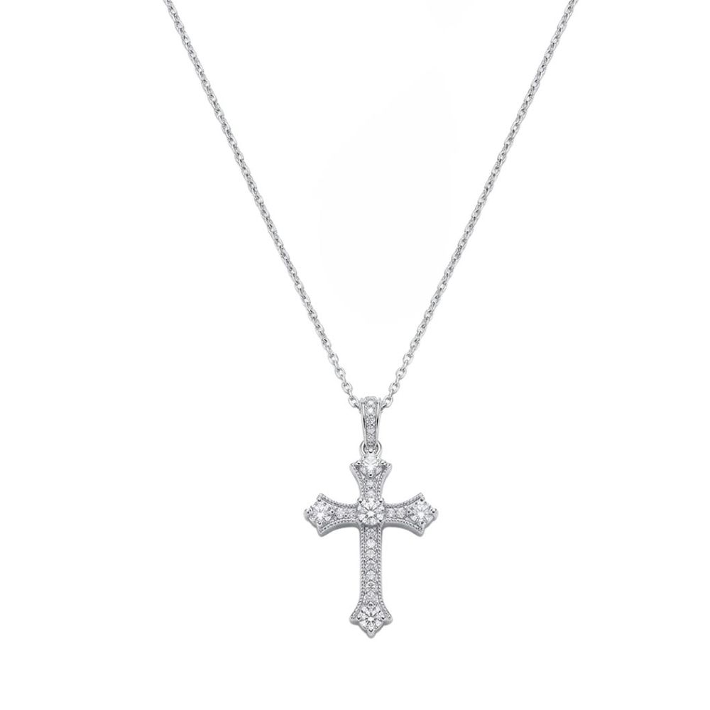 Colar Cruz Cravejada 3MM Prata 925 Moissanite Moissanite U |