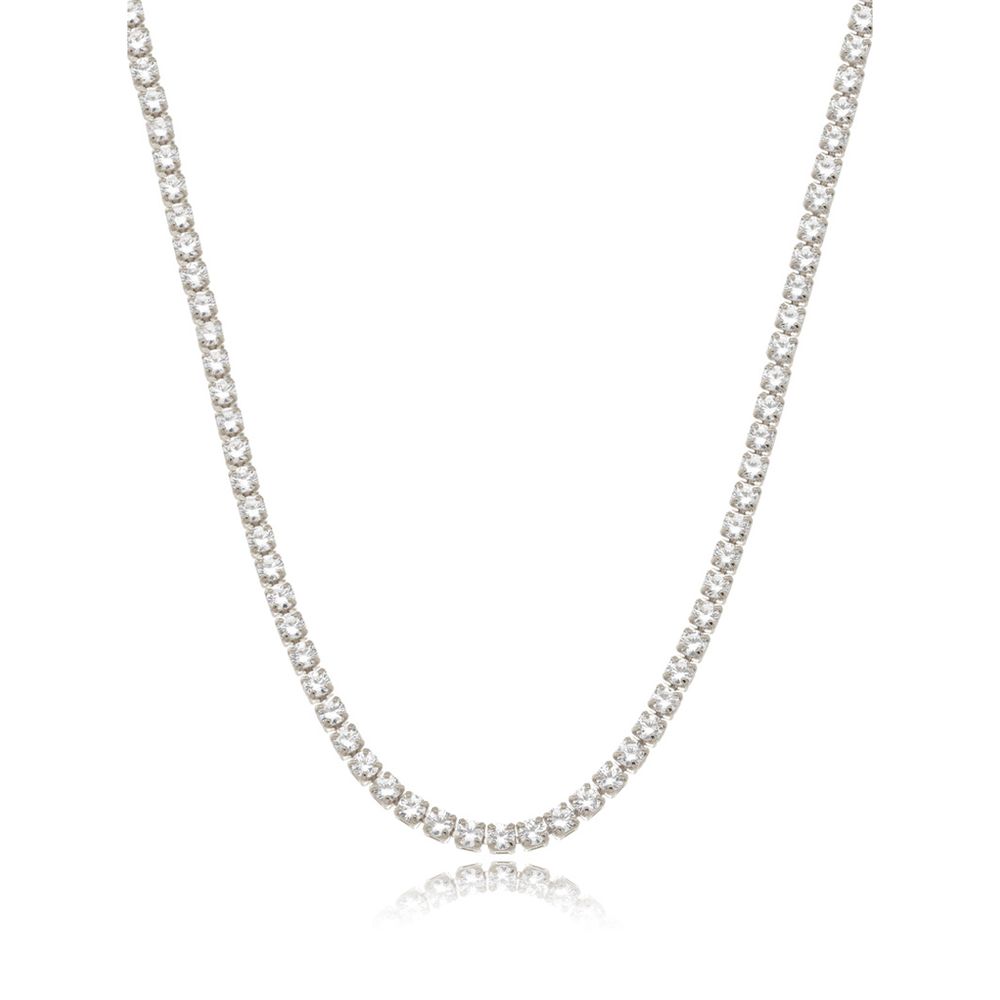 Colar Delicado Riviera Redondas Banho Ródio Cristal Transparente U |
