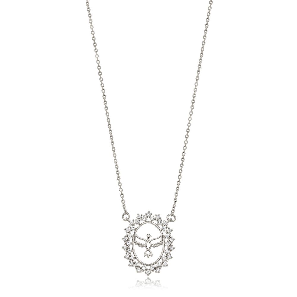 Colar Mandala Vazada Espíristo Santo Cravejado Banho Ródio Zircônia Transparente U |