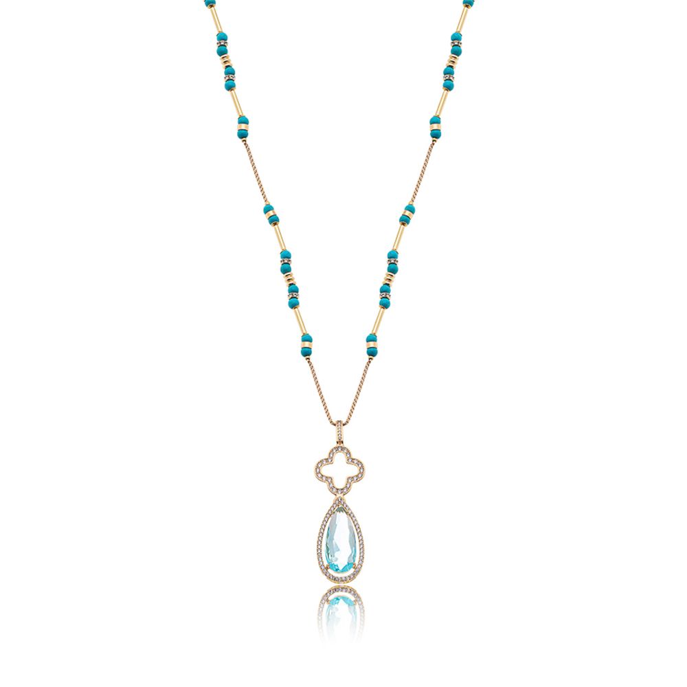 Colar masha ajustável em canutilhos de howlita turquesa banhado em ouro 18k com pingente gota em cristal