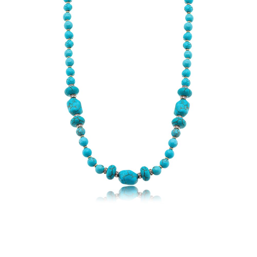 Colar Masha Redondo Detalhe Cravejado Banho Ouro 18k Howlita Turquesa U |