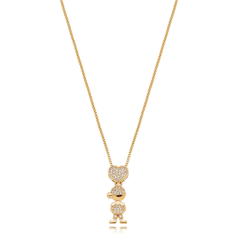 Colar Menino Coração Cravejado Banho Ouro 18K Zircônia Transparente U |