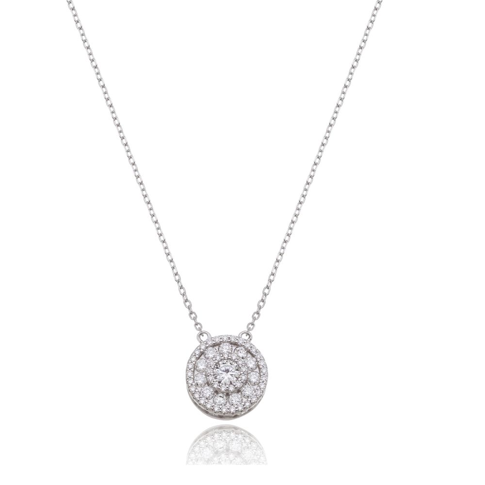 Colar Pingente Redondo 2MM Prata 925 Moissanite Moissanite U |